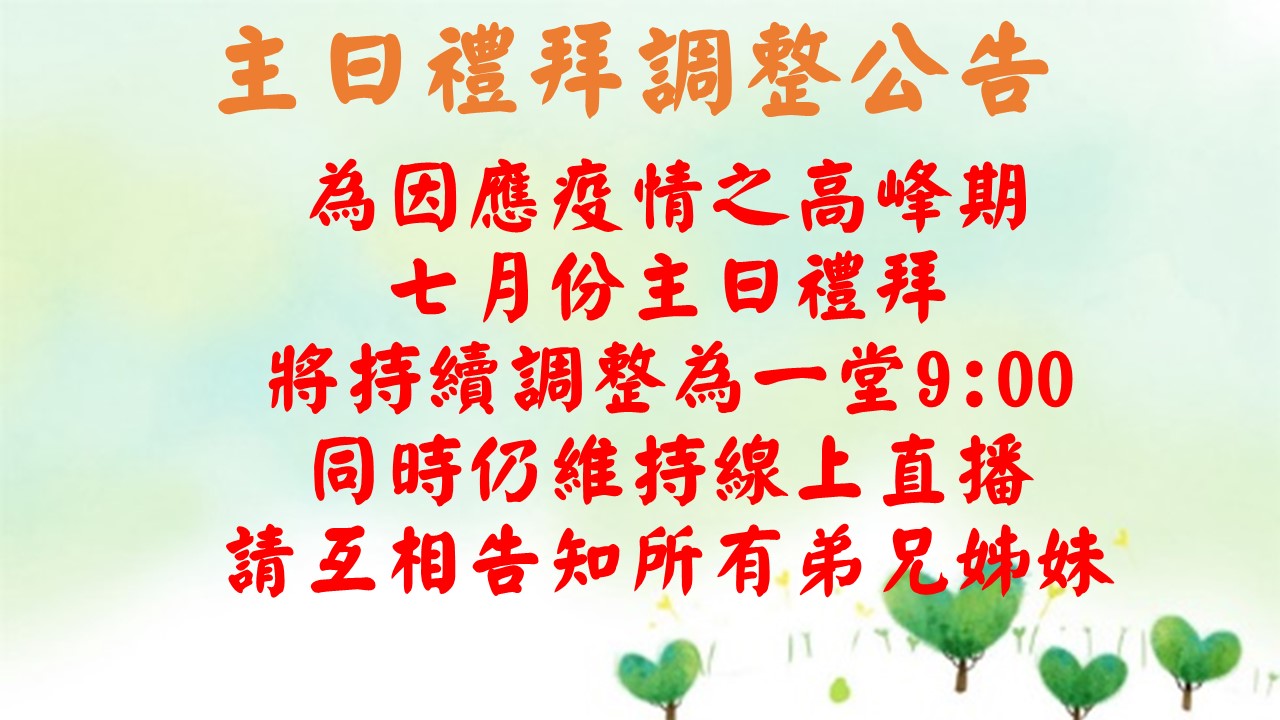 主日禮拜調整公告
