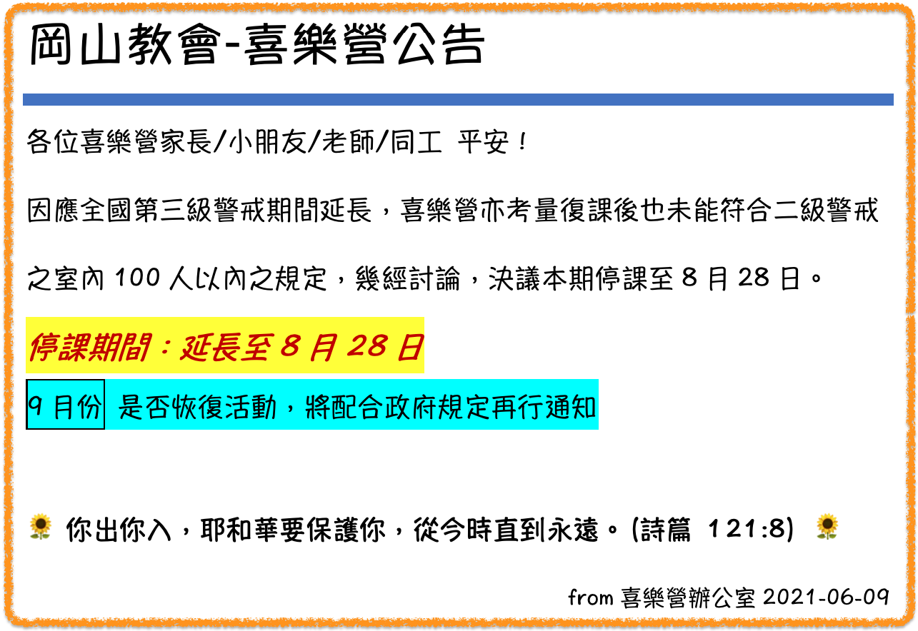 喜樂營停課延長公告